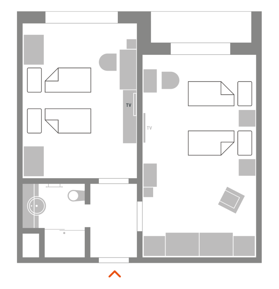 Naše priestranné a elegantne zariadené Deluxe rooms ponúkajú ubytovanie v dvoch oddelených spálňach s balkónom.